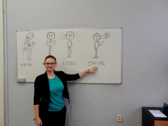 Hlavní úlohou učitele je, aby pomohl mluvit a vyslovovat správně. Prezentuje jen tolik látky, kolik můžete zvládnout, a pokračuje dále, jen když si je jistý, že ji umíte použít.