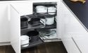 Rohové skříňky, které využívají to nejjednodušší a nejlevnější řešení, tedy pevné police, vás velmi rychle přesvědčí o tom, že jste neudělali dobré rozhodnutí. K uloženému nádobí zejména v zadních partiích skříňky se budete skutečně obtížně dostávat, aniž byste si dřepli nebo klekli. A kvůli nedostatečnému přístupu světla zavládne po nějaké době ve skříňce nefalšovaný zmatek.