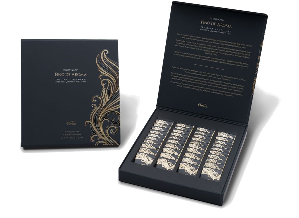 Podobně jako u vína i u čokolády hraje roli původ kakaových bobů. Chuť čokolády se liší i mezi vysokoprocentními druhy, vybírat tak můžete z celé řady chuťových odstínů a vůní. K degustaci s kvalitním vínem nebo k slavnostní příležitosti můžete zvolit například prémiovou kolekci Fino de Aroma od české čokoládovny Carla. Pochází z výběrových kakaových bobů, které tvoří pouhých 6 % roční celosvětové produkce. Vyznačuje se ovocno-květinovým aroma s jemným oříškovým nádechem, které je podtrženo vanilkovým extraktem Bourbon Madagascar. Elegantní obal navíc přímo svádí k obdarování v kombinaci s lahví vína.
