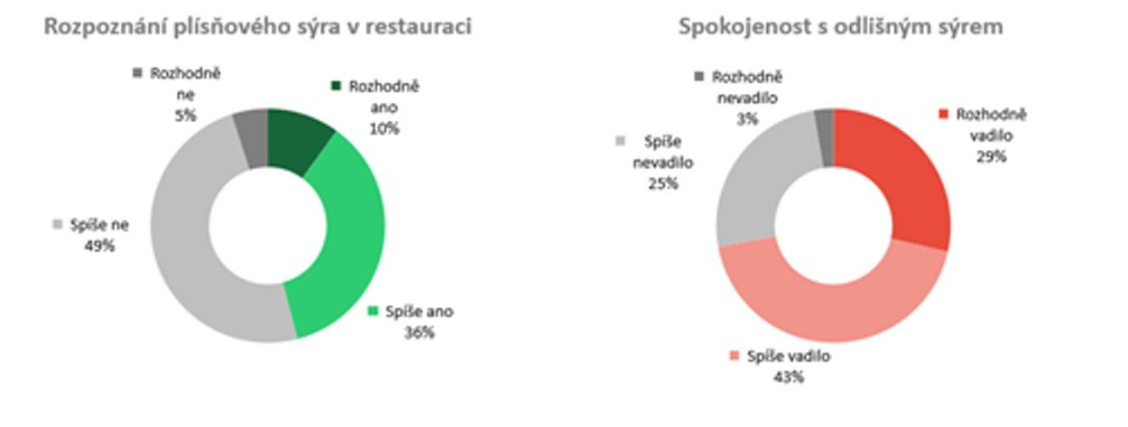 - Většina lidí si všimla různého označení na krabičkách plísňových sýrů (86 %), ovšem více než třetina z nich přiznává, že mezi nimi nevnímá žádný rozdíl (39 %)