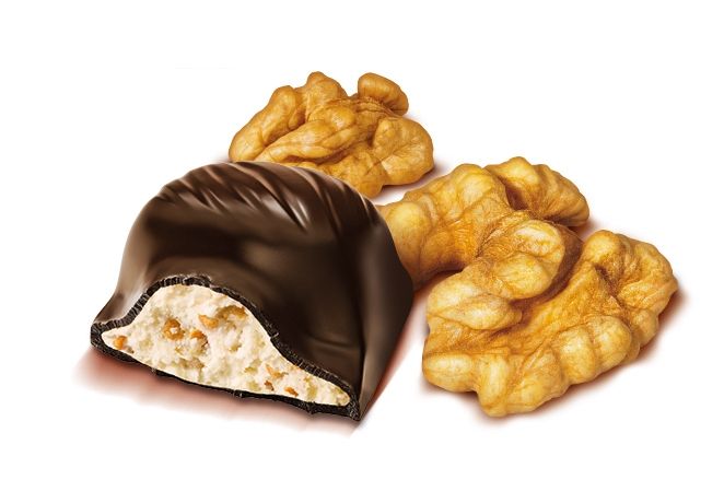 1) nová limitovaná edice LEDOVÉ KAŠTANY Vlašský Ořech v kvalitní hořké čokoládě s lahodnou mléčnou náplní a s kousky karamelizovaných ořechů