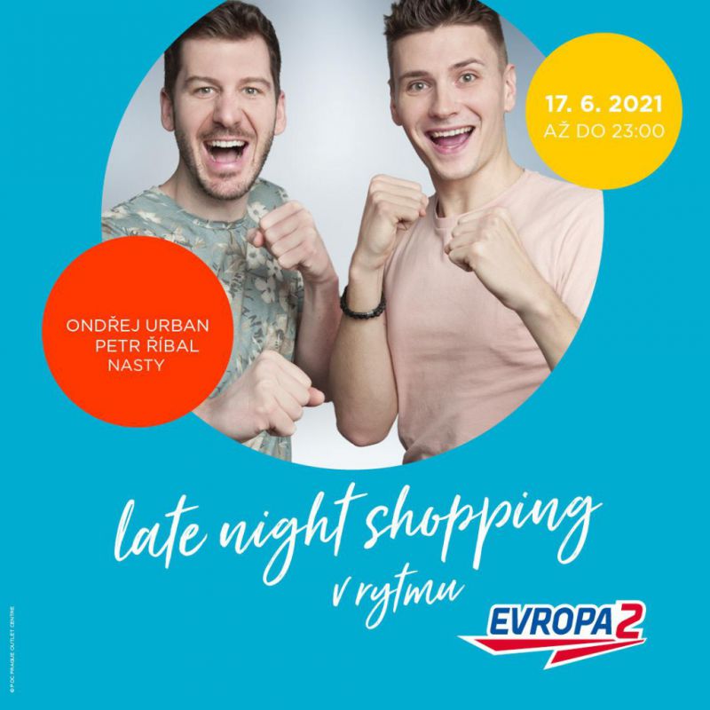 Celé dopoledne si užijete nákupy s hity z playlistu Evropy 2 a pak se začnou dít věci. Ve 13:00 to na našem pódiu rozparádí DJ a po něm pořádná letní show s Ondrou Urbanem a Petrem Říbalem. S touhle moderátorskou dvojicí si zasoutěžíte o hodnotné ceny a dárkové karty. Od 21:00 to na pódiu rozjede pořádně rozjede Nasty. Celý den si můžete zpříjemnit vedle nákupů také různými koktejly, zmrzlinou anebo po dlouhé době ocenit umění profi barmanů.