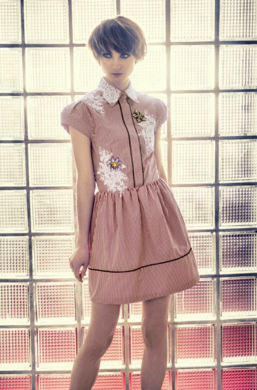 Kolekci, která je šita na míru, doplňují troje košilové šaty modelové řady. Bílou košilovinu Madeira s vyšívaným vzorem ozvláštňují originální lomené přímky a černé lemování. Kostkovaný model, dostupný v různých barvách a velikostech kostky, zdobí decentní krajka a korálkové květinové aplikace.