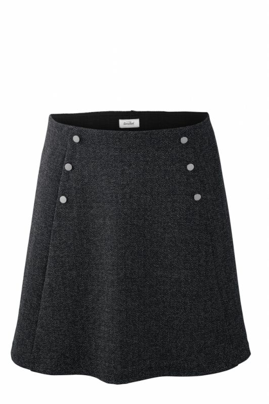 Sukně do podzimních dnů. Má strukturovaný povrch, je střižená mírně do A a její přední díl zdobí dělicí švy a knoflíky. Předběžná cena 399 Kč.
